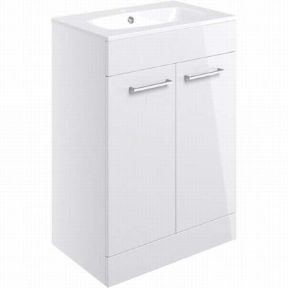 Floor Standing 2 Door Unit With Basin White Gloss – Includes 1 Tap Hole Ceramic Basin And Chrome Handles.